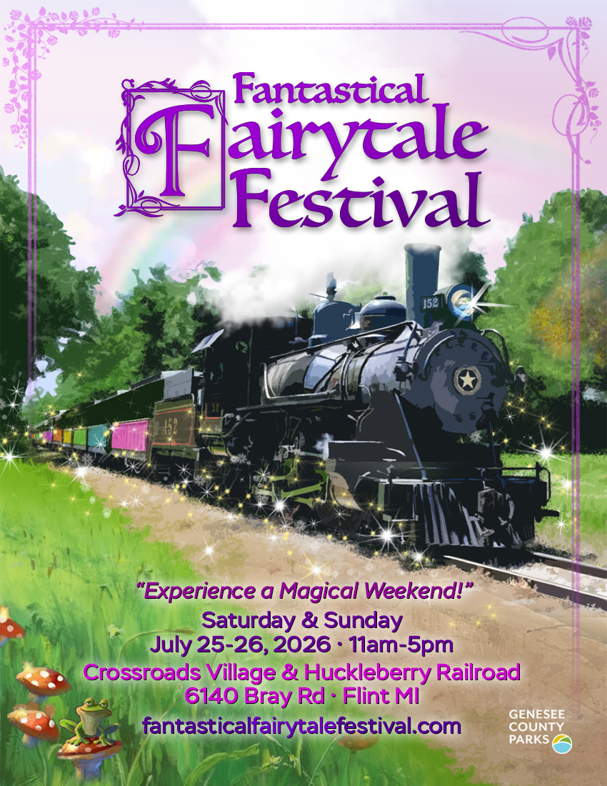 Bring your family & friends to Fantastical Fairytale Festival on Saturday & Sunday July 25-26, 2026 from 11am-5pm at Crossroads Village & Huckleberry Railroad in Flint Michigan,.. and make a memory that will live happily ever after.